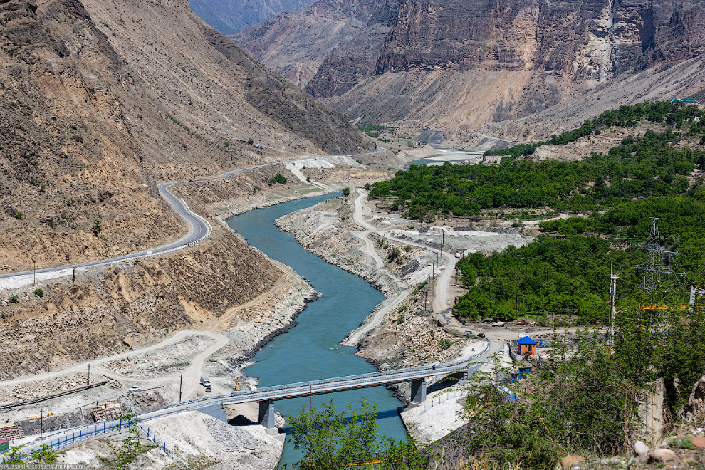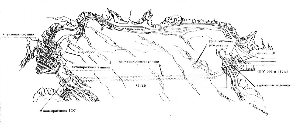 Строительство началось в 1977 году в совершенно не освоенной местности с почти нулевой транспортной доступностью. Поэтому получился очень большой подготовительный этап, который растянулся аж на 10 лет — только в 1987 году приступили к возведению основных сооружений станции. За счет сметы станции был построен Гимринский автодорожный тоннель длиной 4303 м (самый протяженный в России в своем классе); стоит отметить, что вариант доставки грузов на стройку водным транспортом по Чиркейскому водохранилищу был дешевле, но строительство тоннеля имело большой сопутствующий социально-экономический эффект для всего Дагестана. В воспоминаниях встречал, что первоначально этот тоннель задумывался однополосным с реверсивным движением, мол расчетный трафик там такой, что еще долго две полосы не будут нужны. Но на обсуждении проекта был сделан выбор в сторону двухполосного варианта. Аргументом послужило высказывание одного инженера, который давно работал в Дагестане на строительстве Чиркейской и Миатлинской станциях. Мол вы хотите построить четырехкилометровый однополосный тоннель. Вы думаете местные будут смотреть на светофоры на въезде? Все поедут сразу. И вот представьте, как они будут с оружием и ножами выяснять очередность проезда где-нибудь в центре тоннеля. После этого весомого аргумента решили строить двухполосный тоннель. Который, кстати, после пуска был сразу востребован в большом объеме. А его история строительства заслуживает отдельного материала, конечно.