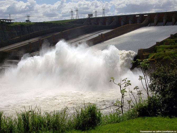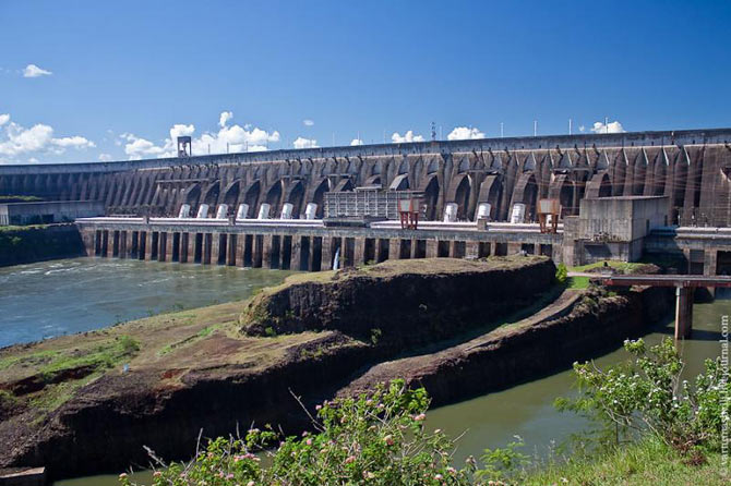 Для строительства этой ГЭС пришлось примириться двум давним недругам — Бразилии и Парагваю, т.к. место строительства плотины находилось точно на границе двух стран! На данный момент Итайпу покрывает около 20% потребностей в электроэнергии Бразилии и почти 93% — Парагвая!