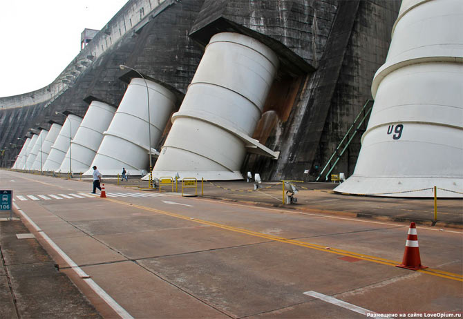В состав сооружений ГЭС Итайпу входит также бетонный водосброс с максимальным потоком в 62 200 куб.м в секунду!