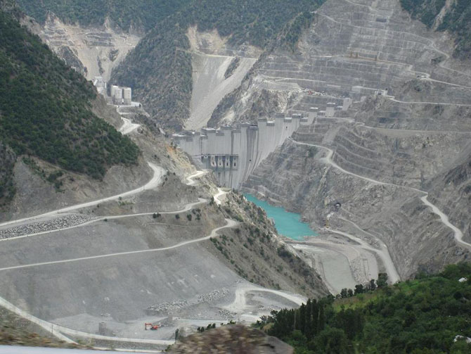 Эта гидроэлектрическая дамба на реке Ингури в Грузии – вторая по высоте бетонная дамба дугового типа в мире.