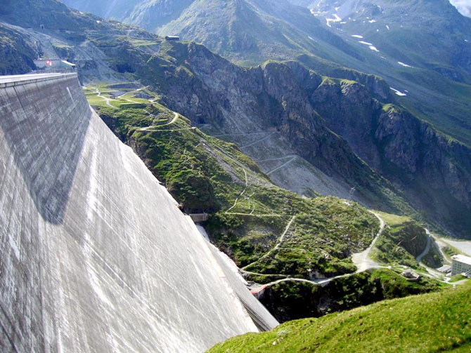 Бетонная гравитационная дамба на реке Диксенс в Швейцарии, высотой в 285 метра, является самой высокой плотиной подобного типа в мире.