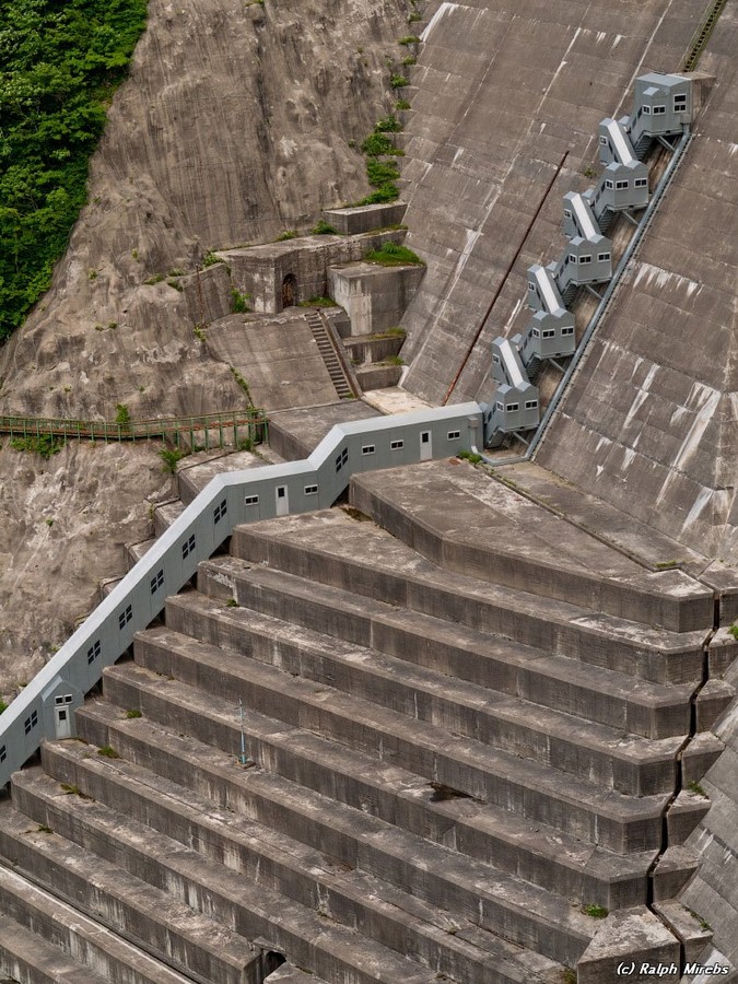 Внутренняя сторона дамбы не плоская - на ней полно лесенок, ходов, ступенек.