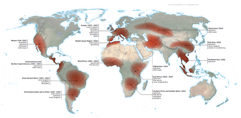 Рис. 1. Примеры значительных засух и пострадавших от них систем;