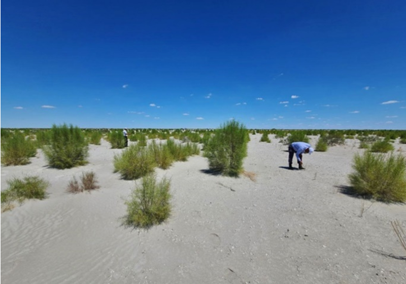 Рис. 6. Посадка саксаула на высохшем дне Аральского моря