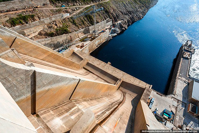 Бетонная гравитационная плотина высотой 140 метров является самой высокой в России плотиной подобного типа.