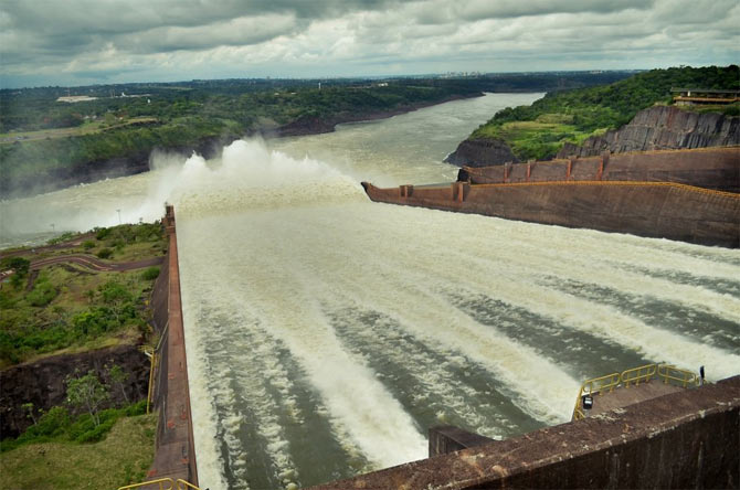 Итайпу является крупнейшей ГЭС в мире по выработке электричества в год. Это чудо инженерной мысли стоимостью более 15 млрд. долларов находится на реке Парана на границе Бразилии и Парагвая.
