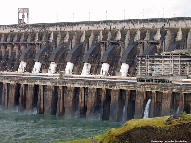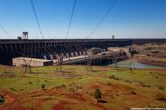 Для строительства этой ГЭС пришлось примириться двум давним недругам — Бразилии и Парагваю, т.к. место строительства плотины находилось точно на границе двух стран! На данный момент Итайпу покрывает около 20% потребностей в электроэнергии Бразилии и почти 93% — Парагвая!