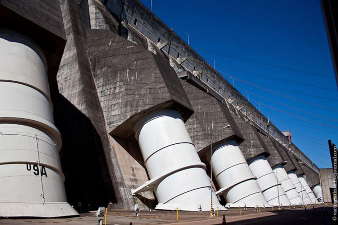 В состав сооружений ГЭС Итайпу входит также бетонный водосброс с максимальным потоком в 62 200 куб.м в секунду!