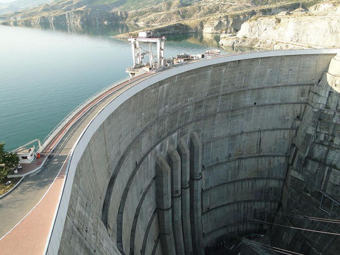 Эта арочная дамба на реке Сулак – самая высокая дамба такого типа в России, с высотой в 232.5 метра.