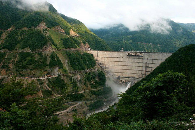 Эта гидроэлектрическая дамба на реке Ингури в Грузии – вторая по высоте бетонная дамба дугового типа в мире.