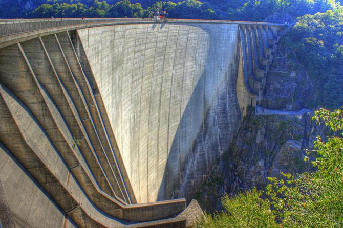 Бетонная гравитационная дамба на реке Диксенс в Швейцарии, высотой в 285 метра, является самой высокой плотиной подобного типа в мире.