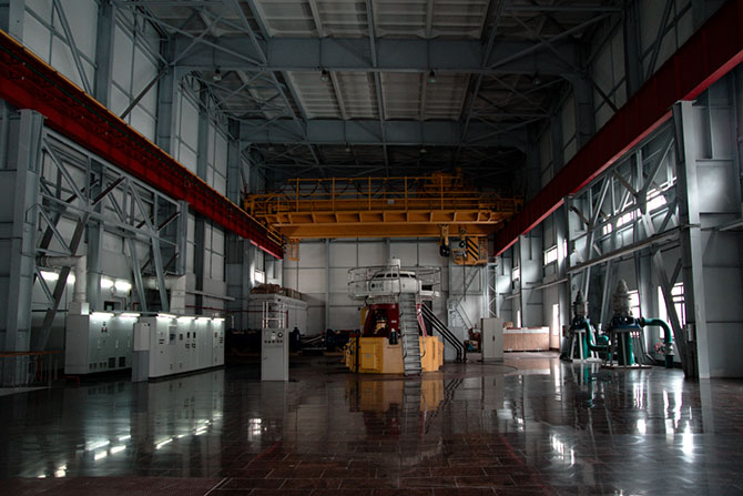 В здании ГЭС установлена одна четырёхлопастная поворотно-лопастная гидротурбина с предтурбинным дисковым затвором, приводящая в движение гидрогенератор. Диаметр рабочего колеса гидротурбины — 3,5 м, вес рабочего колеса — около 30 тонн.